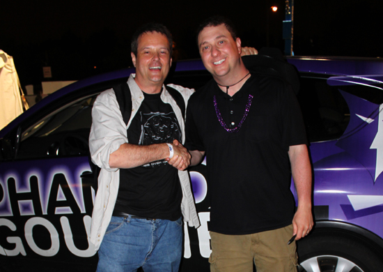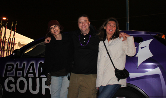 Gina, Dan and Princess yuk it up in front of the Phantom Gourmet car.
