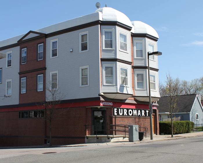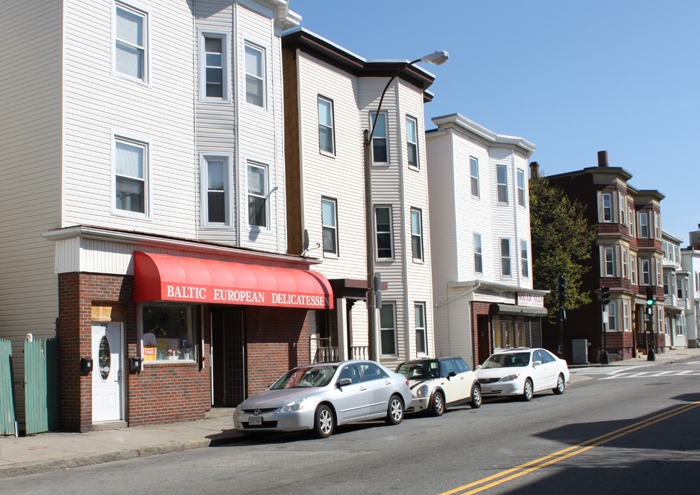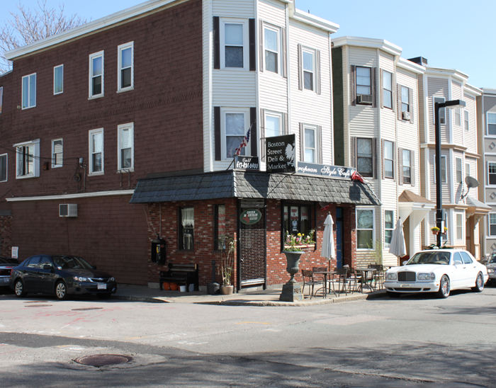 96 Boston Street The owner, a former music producer involved with the New Kids on the Block, owns much of the Real Estate in the neighborhood and runs the deli as a labor of love. He drives a white Bentley (it's in the picture). ...Speaking of the New Kids, this is Donnie & Mark Wahlberg's 'hood. This place is right across the street from the big padlock building. |