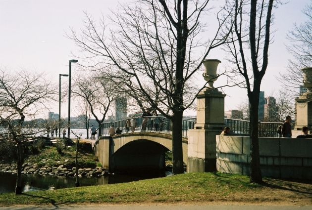 Park land along the south bank of the Charles River in Boston. The Esplanade stretches from the Museum of Science to the Harvard Bridge at Massachusetts Avenue.