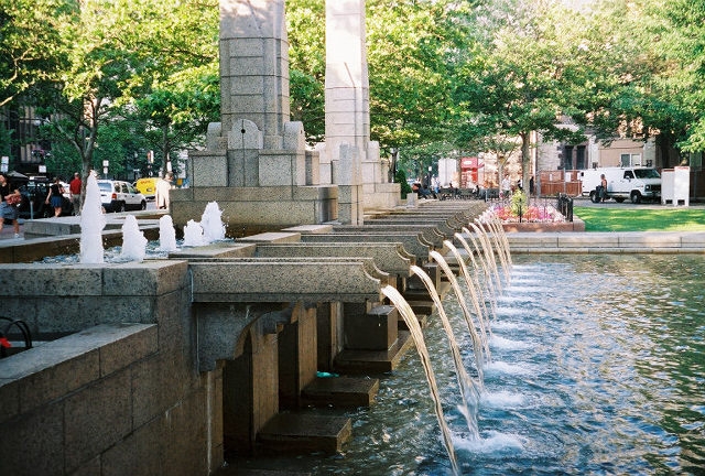 The fountains at Copley Square in front of H.H. Richardson's Trinity Church.