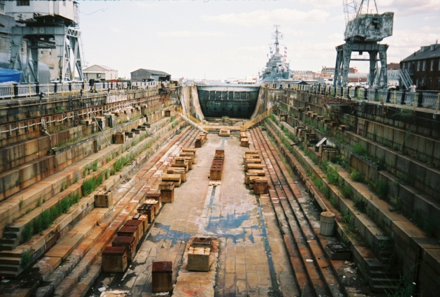 Drydock work area for big ships. Built and first used in 1833. Last used in 1975.