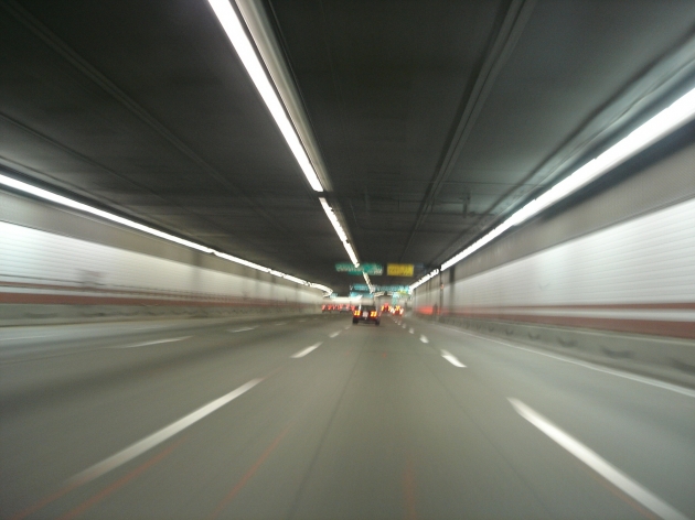 Entering the Big Dig tunnel from I-93 South. This portion of the BIG DIG was opened to traffic in December 2003.