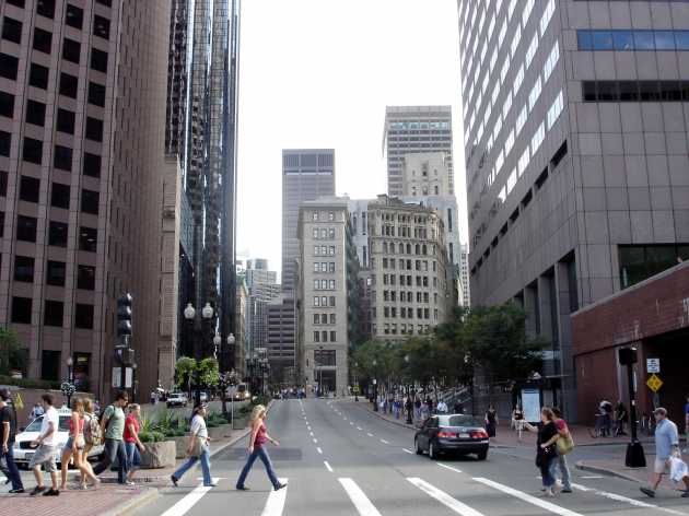 Looking south on Congress Street between Faneuil Hall and Boston City Hall.