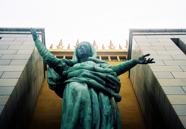 Constructed at Orient Heights East Boston in 1954, this 35-foot statue of the Madonna is a full size replica of one at the Don Orione Center in Rome.