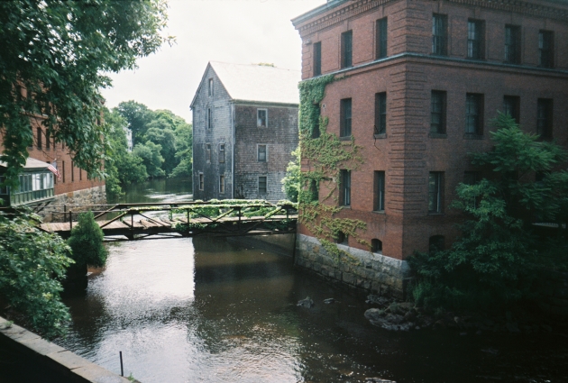 Industrial buildings on the Neponset River in the Lower Mills section of Dorchester, MA (part of Boston).