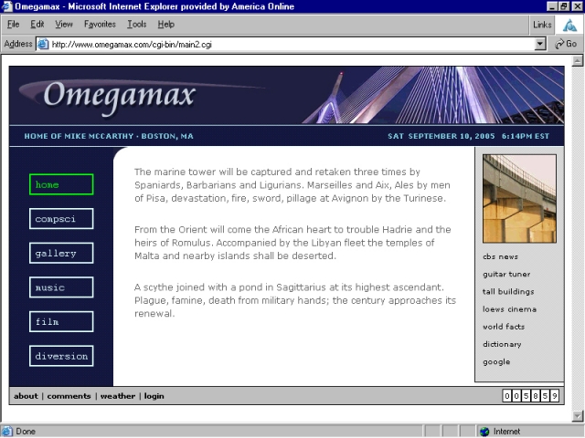 This is what the Omegamax home page looked like from 2005-2006.