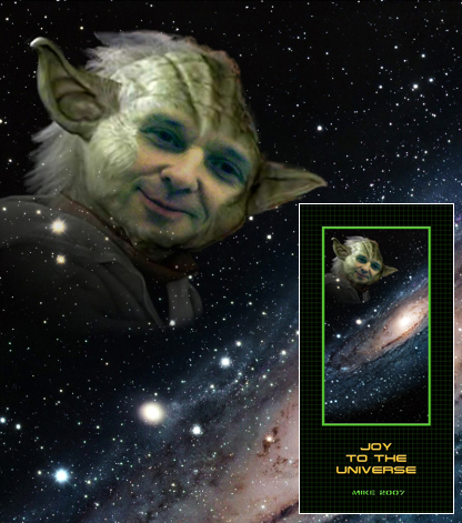 Yoda's head superimposed on a picture of the Andromeda Gallaxy.